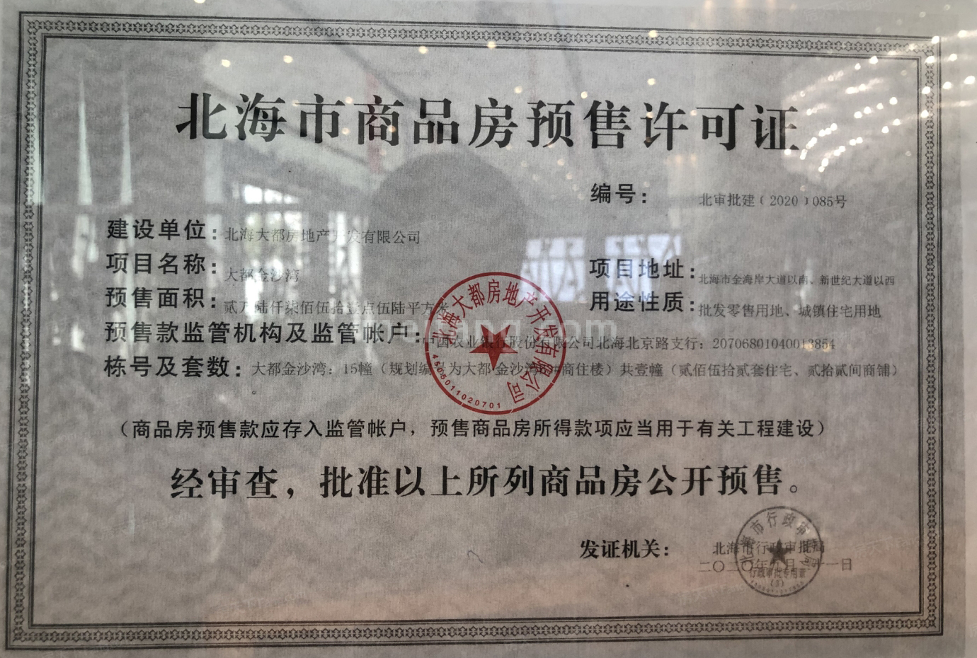 预售证号: 北审批建【2020】085号