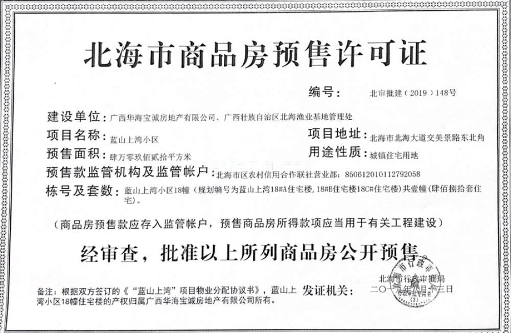 预售证号: 北审批建【2019】148号