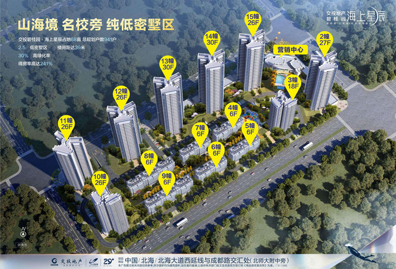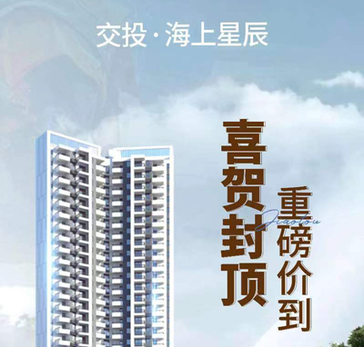 北海碧桂园海上星辰14号楼封顶大吉,建筑面积128㎡3+2房限时放价,其中14-3001号房,建面128.77㎡,原单价6992元/平,原总价900412元,现折后单价6295元/平,折后总价810589元。(活动时间:2023.8.22-2023.78.31) [详情]