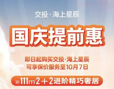 北海碧桂园海上星辰五一提前惠,6套一口价房源限时购,建筑面积79-128㎡户型2+1、2+2、2+3房,精装交付。 [详情]