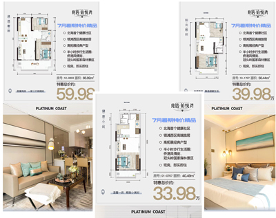 北海铂悦湾7月暑期特价品质好房,5套活动房源,总价低至38万/套,其中1栋0107房,建筑面积40.49㎡,总价33.98万元。(活动时间:2023.7.10-2023.7.30) [详情]