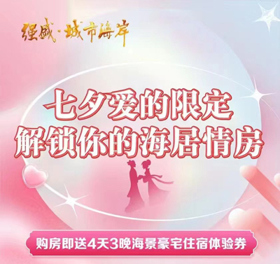 北海强盛城市海岸七夕节,解锁你的海居情房。购房即享4天3晚豪华海景住宿体验券。享免费接机服务跟砸金蛋好礼。(活动时间:2023.8.22-2023.8.31) [详情]